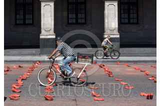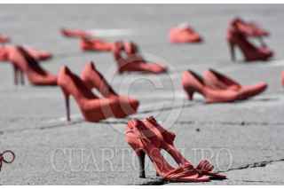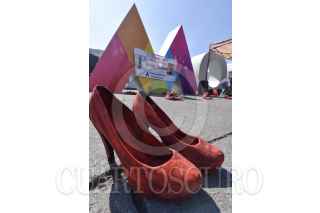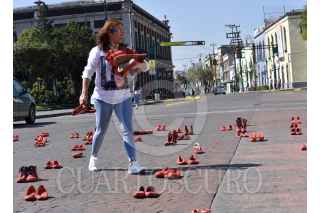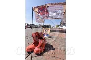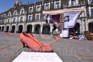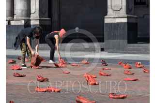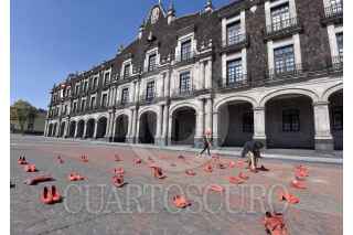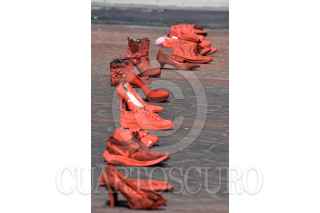 TOLUCA, ESTADO DE MÉXICO, 30NOVIEMBRE2019.- Familiares de víctimas de feminicidio y mujeres de diversos colectivos se reunieron frente a Palacio de Gobierno e instalaron el performance “Zapatos Rojos”, los zapatos representan a las mujeres que han sido asesinadas en el Estado de México, este es un proyecto de arte creado por Elina Chauvet y es la primera vez que se realiza en la capital mexiquense, pidiendo justicia y alto a la violencia de género. FOTO: CRISANTA ESPINOSA AGUILAR /CUARTOSCURO.COM