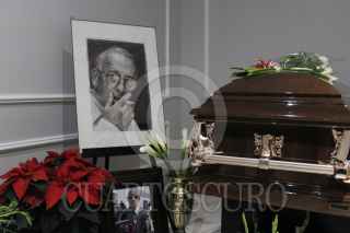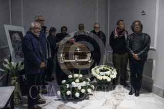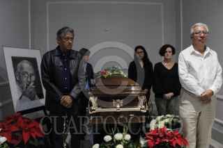 CIUDAD DE MÉXICO, 30NOVIEMBRE2019.- Carlos Jurado, fotógrafo y artista plástico, murió hoy por la madrugada a las 03:39 horas. En la imagen, su hija Zinzuni Jurado, y el fotógrafo Antonio Turok, durante la velación de su cuerpo en la Funeraria García López, ubicada en General Prim, Colonia Juárez. FOTO: MAGDALENA MONTIEL /CUARTOSCURO.COM