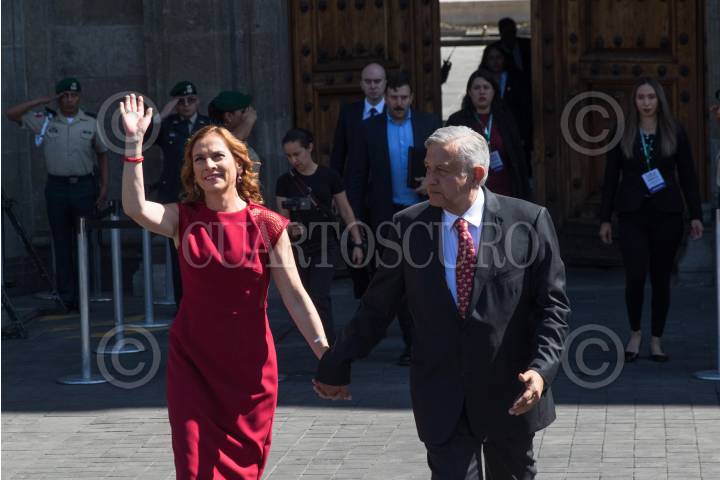 CIUDAD DE MÉXICO, 01DICIEMBRE2019.- Una bandera multicolor con el moño rojo alusivo a la lucha mundial contra el VIH lució en el mitin político que encabezó Andrés Manuel López Obrador, Presidente de México, por su 1 Informe de Gobierno realizado en el Zócalo. FOTO: MOISÉS PABLO /CUARTOSCURO.COM