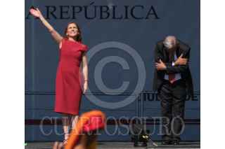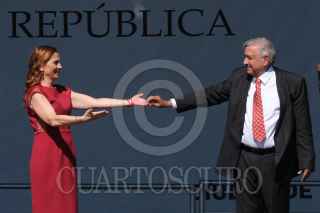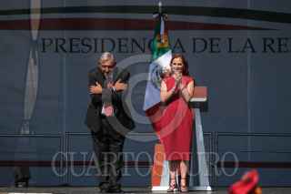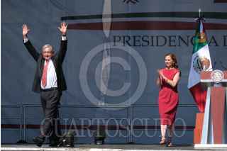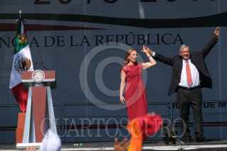 CIUDAD DE MÉXICO, 01DICIEMBRE2019.- Andrés Manuel López Obrador, presidente de México, presentó su Informe con motivo del Primer año de su Gobierno, lo acompañó su esposa Beatriz Gutiérrez Müller. El acto se realizó en el Zócalo capitalino. FOTO: GRACIELA LÓPEZ /CUARTOSCURO.COM