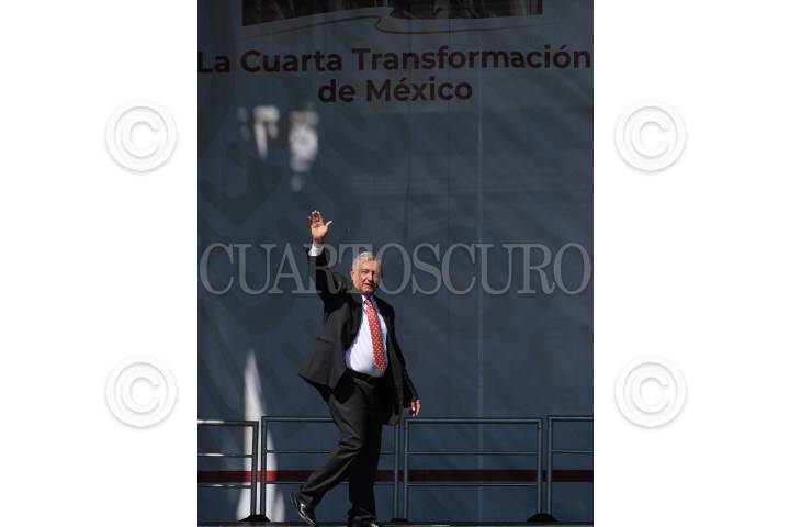 CIUDAD DE MÉXICO, 01DICIEMBRE2019.- Andrés Manuel López Obrador, presidente de México, presentó su Informe con motivo del Primer año de su Gobierno, lo acompañó su esposa Beatriz Gutiérrez Müller. El acto se realizó en el Zócalo capitalino. FOTO: GRACIELA LÓPEZ /CUARTOSCURO.COM