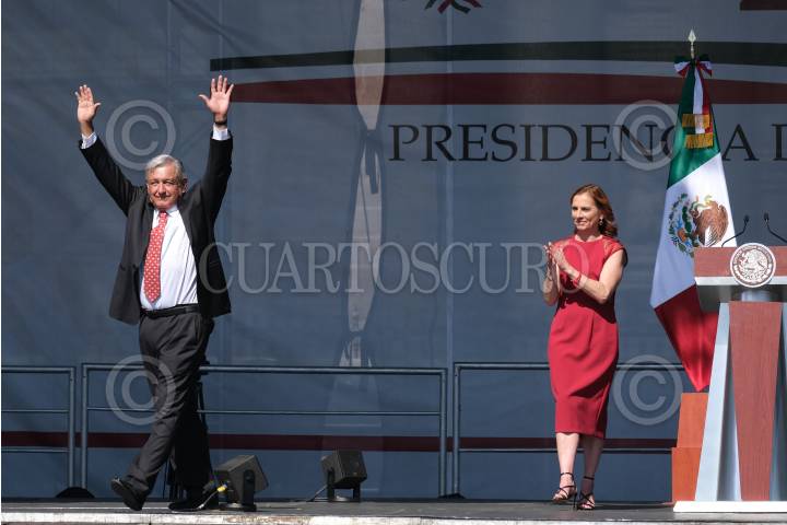 CIUDAD DE MÉXICO, 01DICIEMBRE2019.- Andrés Manuel López Obrador, presidente de México, presentó su Informe con motivo del Primer año de su Gobierno, lo acompañó su esposa Beatriz Gutiérrez Müller. El acto se realizó en el Zócalo capitalino. FOTO: GRACIELA LÓPEZ /CUARTOSCURO.COM