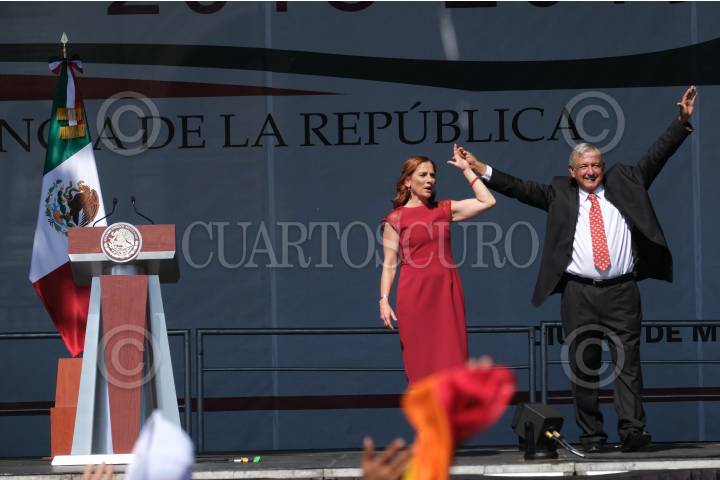 CIUDAD DE MÉXICO, 01DICIEMBRE2019.- Andrés Manuel López Obrador, presidente de México, presentó su Informe con motivo del Primer año de su Gobierno, lo acompañó su esposa Beatriz Gutiérrez Müller. El acto se realizó en el Zócalo capitalino. FOTO: GRACIELA LÓPEZ /CUARTOSCURO.COM