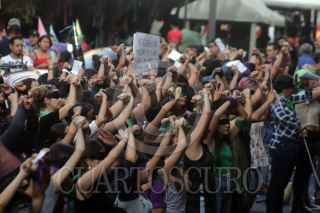 CUERNAVACA, MORELOS, 01DICIEMBRE2019.- Cientos de mujeres participaron en la convocatoria “Cacerolazo Continental” que se llevó a cabo esta tarde en distintas ciudades de Latinoamérica. En Cuernavaca, la convocatoria fue exclusivamente para mujeres que de esta manera protestaron contra el feminicidio en la entidad, exigieron que el gobierno estatal en este tema vaya más allá de eventos donde se toman fotos. FOTO: MARGARITO PÉREZ RETANA /CUARTOSCURO.COM