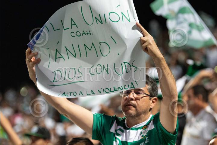 TORREÓN, COAHUILA, 01DICIEMBRE2019.- Los Santos se enfrentan a los Rayados del Monterrey, en el Estado Corona, el parido se encuentra empatado a un gol, por los locales anotó Brian Lozano y por los regios Vincent Janssen, con este marcador los visitantes logran su pase a las semifinales de la Liga MX, ya que los de Monterrey se impusieron 5-2 en el primer partido, global final 6-3. FOTO: ROGELIO CUEVA /CUARTOSCURO.COM