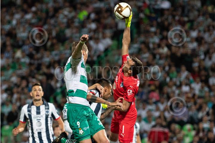 TORREÓN, COAHUILA, 01DICIEMBRE2019.- Los Santos se enfrentan a los Rayados del Monterrey, en el Estado Corona, el parido se encuentra empatado a un gol, por los locales anotó Brian Lozano y por los regios Vincent Janssen, con este marcador los visitantes logran su pase a las semifinales de la Liga MX, ya que los de Monterrey se impusieron 5-2 en el primer partido, global final 6-3. FOTO: ROGELIO CUEVA /CUARTOSCURO.COM