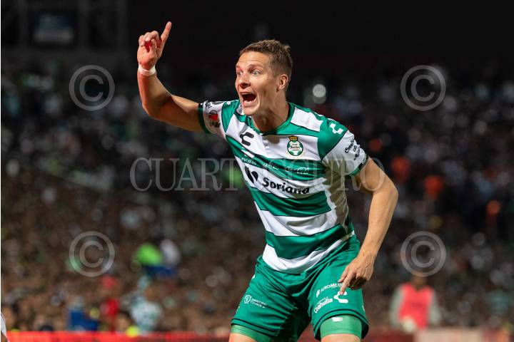TORREÓN, COAHUILA, 01DICIEMBRE2019.- Los Santos se enfrentan a los Rayados del Monterrey, en el Estado Corona, el parido se encuentra empatado a un gol, por los locales anotó Brian Lozano y por los regios Vincent Janssen, con este marcador los visitantes logran su pase a las semifinales de la Liga MX, ya que los de Monterrey se impusieron 5-2 en el primer partido, global final 6-3. FOTO: ROGELIO CUEVA /CUARTOSCURO.COM