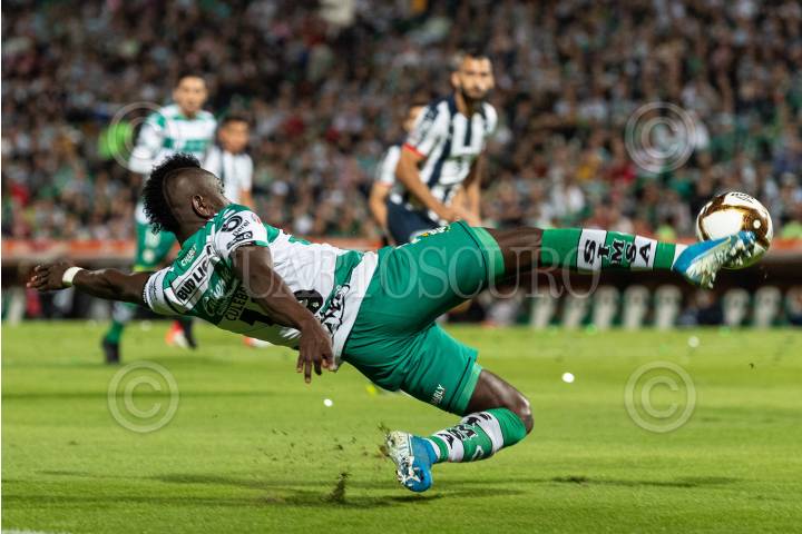 TORREÓN, COAHUILA, 01DICIEMBRE2019.- Los Santos se enfrentan a los Rayados del Monterrey, en el Estado Corona, el parido se encuentra empatado a un gol, por los locales anotó Brian Lozano y por los regios Vincent Janssen, con este marcador los visitantes logran su pase a las semifinales de la Liga MX, ya que los de Monterrey se impusieron 5-2 en el primer partido, global final 6-3. FOTO: ROGELIO CUEVA /CUARTOSCURO.COM