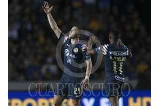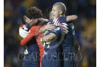 MONTERREY, NUEVO LEÓN, 01DICIEMBRE2019.- Jugadores del equipo del América, celebran el triunfo y su pase a semifinales, ante los Tigres de la UANL, en el estadio Universitario, partido de vuelta en cuartos de final de la Liguilla MX, Apertura 2019. Marcador Final: Tigres: 2 - América: 4 Marcador Global: Tigres: 4 - América: 5 FOTO: GABRIELA PÉREZ MONTIEL /CUARTOSCURO.COM