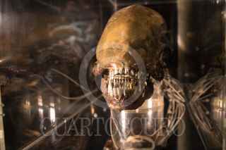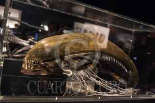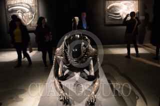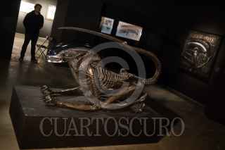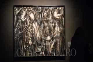 CIUDAD DE MÉXICO, 02DICIEMBRE2019.- Un inmueble de Paseo de la Reforma albergará la exposición "Solo con la noche" del artista suizo H. R. Giger (1940-2014), con la cual se festejará el 40 aniversario de la película "Alien: el octavo pasajero", el artista suizo fue uno de los creadores en cine del monstruo futurista Alien. La exposición cuenta con 128 obras procedentes de colecciones privadas y públicas de Europa, el museo H. R. Giger de Suiza y el centro de cultura contemporánea Le Lieu Unique de Francia abarcando la escultura, muebles, dibujo, pinturas, fotografías, contenido audiovisual y la cabeza original de Alien que se utilizó en la película "Alien: el octavo pasajero". FOTO: MOISÉS PABLO /CUARTOSCURO.COM