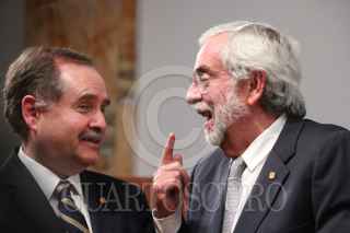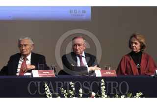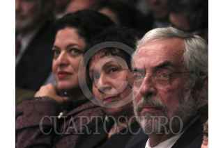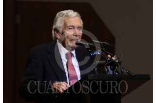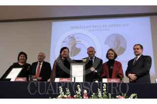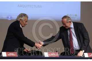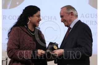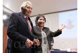 CIUDAD DE MÉXICO, 02DICIEMBRE2019.- Agustín Hernández y Lucina Jiménez, durante la entrega de la Medalla Bellas Artes de Arquitectura 2019, acto realizado en la Sala Manuel M. Ponce del Palacio de Bellas Artes. FOTO: ROGELIO MORALES /CUARTOSCURO.COM
