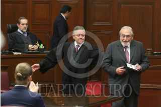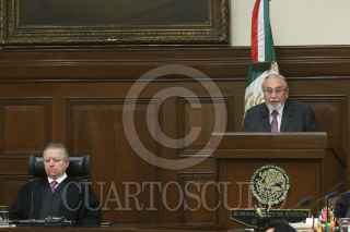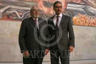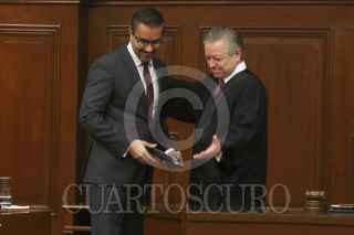 CIUDAD DE MÉXICO, 03DICIEMBRE2019.- Javier Molina y Bernardo Bátiz, nuevos consejeros de la Judicatura Federal, durante la Sesión solemne de los Plenos del Alto Tribunal Electoral del Poder Judicial de la Federación, realizada en la sede de la SCJN. FOTO: ROGELIO MORALES /CUARTOSCURO.COM