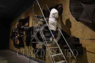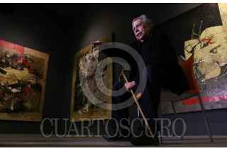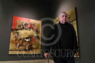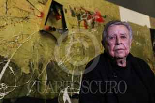 CIUDAD DE MÉXICO, 03DICIEMBRE2019.- El artista plástico zacatecano Manuel Felguérez encabezó la conferencia de prensa, así como el recorrido a medios de la exposición "Manuel Felguérez. Trayectorias", en el Museo Universitario de Arte Contemporáneo. FOTO: GALO CAÑAS /CUARTOSCURO.COM