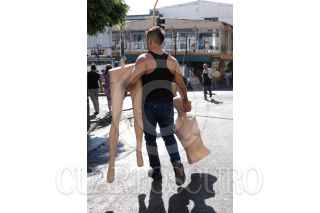 CUERNAVACA, MORELOS, 03DICIEMBRE2019.- Un joven lleva en sus manos dos piezas que forman un maniquí en la calle Guerrero. FOTO: MARGARITO PÉREZ RETANA /CUARTOSCURO.COM