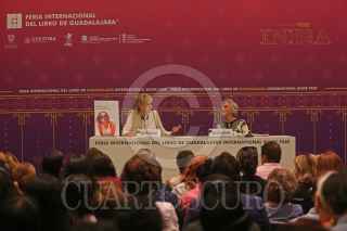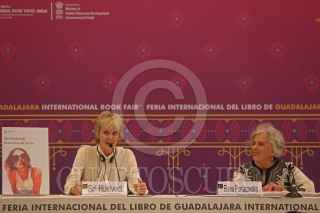 GUADALAJARA, JALISCO, 03DICIEMBRE2019.- La escritora estadounidense Siri Hustvedt presento su libro “Recuerdos del Futuro” en una charla presentada por la escritora mexicana Elena Poniatowska, esto en el marco de edición 33 de la Feria Internacional del Libro de Guadalajara en donde como país invitado de Honor es la India. FOTO: FERNANDO CARRANZA GARCIA / CUARTOSCURO.COM