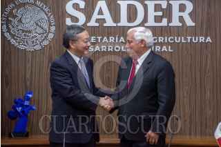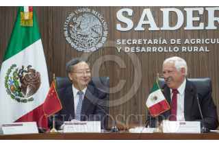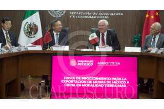 La Secretaría de Agricultura y Desarrollo Rural y la Administración General de Aduanas de la República Popular China (AGA) firmaron el Procedimiento para la exportación de mora azul de México a ese país asiático en modalidad tierra-mar, a partir del cual los productores mexicanos de ese fruto podrán ampliar sus procesos para los envíos. El acuerdo fue firmado en la sede de Agricultura por el secretario Víctor Villalobos Arámbula; el viceministro de la AGA, Hu Wei, el director en jefe del Servicio Nacional de Sanidad, Inocuidad y Calidad Agroalimentaria (Senasica), Francisco Javier Trujillo Arriaga, y el director general adjunto de la Oficina para la Importación y Exportación de Alimentos Seguros de China, Tang Guangjiang. Villalobos Arámbula sostuvo que las relaciones del sector agropecuario de ambos países se han fortalecido en el último año, ya que es instrucción del presidente Andrés Manuel López Obrador mantener comunicación directa y compartir con China nuestra visión sobre alimentación y alternativas sustentables. Subrayó que la relación comercial entre ambas naciones se encuentra en su mejor momento, derivado del prestigio y la confianza que tienen los alimentos mexicanos a nivel internacional, lo que permitió abrir el mercado chino a productos agroalimentarios como carne de cerdo y bovino, tequila, frutillas, maíz blanco, tabaco en hoja, leche y sus derivados, así como de aguacate de Michoacán, mora azul —vía aérea— y uva. FOTO: SADER/CUARTOSCURO.COM