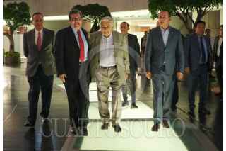 José Alberto Mújica Cordano, expresidente de Uruguay, fue recibido por Ricardo Monreal, coordinador de Morena en el Senado. FOTO: GRACIELA LÓPEZ /CUARTOSCURO.COM