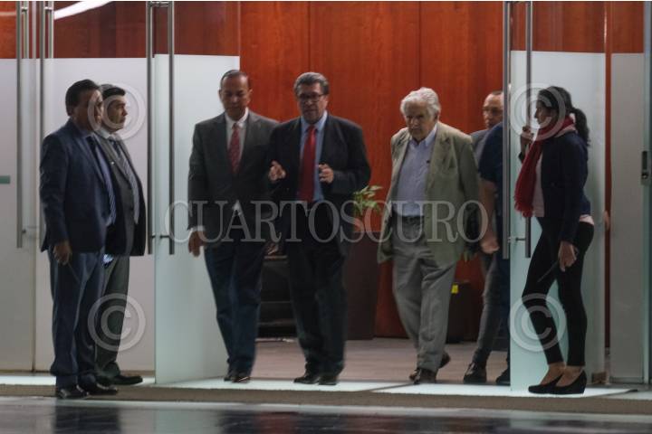 José Alberto Mújica Cordano, expresidente de Uruguay, fue recibido por Ricardo Monreal, coordinador de Morena en el Senado. FOTO: GRACIELA LÓPEZ /CUARTOSCURO.COM