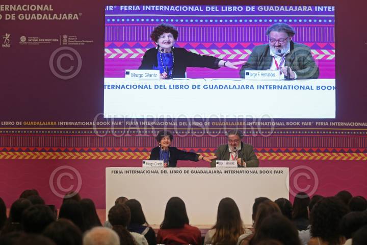 Mil Jóvenes con Margo Glantz mesa de dialogo en la que modero el escritor español Jorge Hernández, esto en el marco de la edición 33 de la Feria Internacional del Libro de Guadalajara en donde como país invitado de Honor es la India. FOTO: FERNANDO CARRANZA GARCIA/CUARTOSCURO.COM