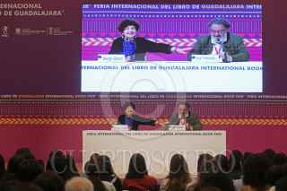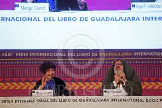 Mil Jóvenes con Margo Glantz mesa de dialogo en la que modero el escritor español Jorge Hernández, esto en el marco de la edición 33 de la Feria Internacional del Libro de Guadalajara en donde como país invitado de Honor es la India. FOTO: FERNANDO CARRANZA GARCIA/CUARTOSCURO.COM