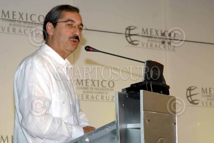 VERACRUZ,VERACRUZ.-25OCTUBBRE2005.- Josè Natividad Gonzàlez Paris, Gobernador del estado de Nuevo Leòn y Miguel Alemàn Velazco, presidente de la "Mèxico, Cumbre de Negocios", al finalizar el evento donde se anunciò que Nuevo Leòn serà sede de la cumbre en el 2006. FOTO: Eduardo Aguirre/CUARTOSCURO.COM