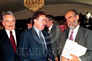 Fernando Gutiérrez Barrios y Emilio Gamboa Patrón, legisladores priístas, conversan con Diego Fernandez de Cevallos del PAN en la sesión de la Cámara Alta. FOTO: Eduardo Loza/CUARTOSCURO.COM