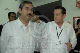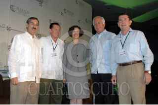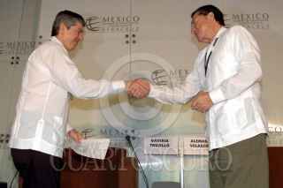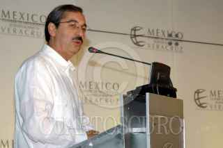 VERACRUZ,VERACRUZ.-25OCTUBBRE2005.- Josè Natividad Gonzàlez Paris, Gobernador del estado de Nuevo Leòn y Miguel Alemàn Velazco, presidente de la "Mèxico, Cumbre de Negocios", al finalizar el evento donde se anunciò que Nuevo Leòn serà sede de la cumbre en el 2006. FOTO: Eduardo Aguirre/CUARTOSCURO.COM