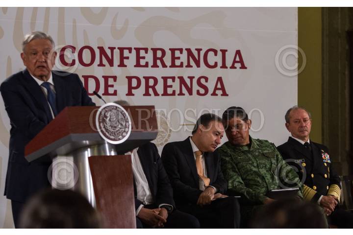 Andrés Manuel López Obrador, presidente de México, acompañado de Alejandro Encinas Rodríguez, subsecretario de Derechos Humanos, Población y Migración de la Secretaría de Gobernación (Segob); Alfonso Durazo Montaño, secretario de Seguridad y Protección Ciudadana; Luis Cresencio Sandoval González, secretario de la Defensa Nacional; José Rafael Ojeda Durán, secretario de Marina; Rosario Piedra Ibarra, presidenta de la Comisión Nacional de los Derechos Humanos (CNDH), durante la entrega del Premio Nacional de Derechos Humanos 2019, los ganadores fueron: Obtilia Eugenio Manuel; Modesta Chávez de la Rosa, viuda de Margarito Díaz González, ganador de la Mención Honorífica post mortem y Gabriela Díaz Chávez, hija de Margarito Díaz Chávez, ganador de la Mención Honorífica post mortem. La premiación se llevó a cabo en el Palacio Nacional. FOTO: ANDREA MURCIA /CUARTOSCURO.COM