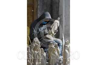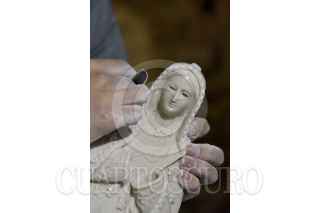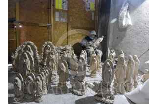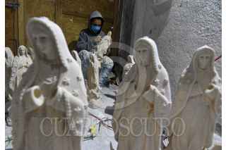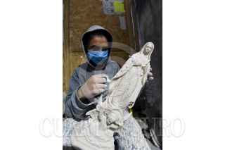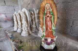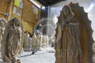 Liliana Flores dueña de Artesanias DMJ y originaria de San Andrés Cuexcontitlán lleva más de 15 años elaborando imágenes de la Virgen de Guadalupe de resina de todos los tamaños, al día pueden hacer hasta 80 piezas, trabajando todo el año, aunque en esta temporadas son más solicitadas a unos días del festejo de la Virgen Morena, son pintadas con aerógrafo una por una y Liliana se encarga de ello; sus piezas no solo se venden en la República Mexicana, tienen clientes en el extranjero, junto con su marido y 4 trabajadores más; esta delegación se caracteriza por el trabajo de la resina para elaborar desde figuras religiosas, máscaras, súper héroes, entre otros. FOTO: CRISANTA ESPINOSA AGUILAR /CUARTOSCURO.COM