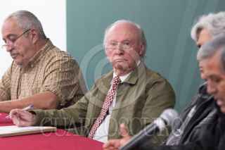 Victor M. Toledo, titular de Semarnat, encabezó el reporte de la Caravana Toxi Tour México, que preside Andrés Barreda, académico de la UNAM y que se realizó en la Secretaria de Medio Ambiente. FOTO: VICTORIA VALTIERRA/CUARTOSCURO.COM