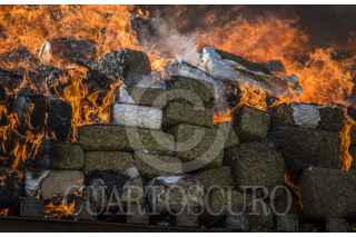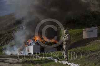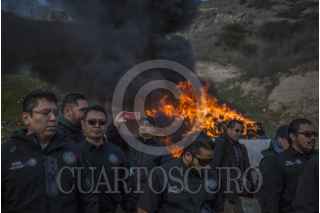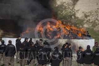 Más de 6 toneladas de drogas fueron incineradas en el 28 Batallón de Infantería de la Segunda Zona Militar, en el Aguaje de la Tuna. La mayoría de los estupefacientes destruidos fueron metanfetaminas, cocaína, marihuana y fentalino. En el acto estuvieron presentes autoridades militares, ministeriales y federales. FOTO: OMAR MARTÍNEZ /CUARTOSCURO.COM