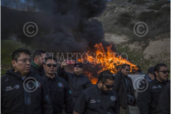 Más de 6 toneladas de drogas fueron incineradas en el 28 Batallón de Infantería de la Segunda Zona Militar, en el Aguaje de la Tuna. La mayoría de los estupefacientes destruidos fueron metanfetaminas, cocaína, marihuana y fentalino. En el acto estuvieron presentes autoridades militares, ministeriales y federales. FOTO: OMAR MARTÍNEZ /CUARTOSCURO.COM
