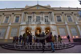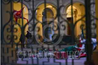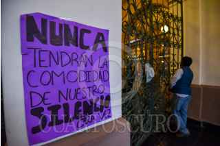 Después de varias horas de que fuera tomada el Aula Magna de Rectoría de la UAEM y el Patio del Cincuentenario por estudiantes universitarias y mujeres integrantes de colectivos feministas en protesta por la muerte de la maestra de Danza Sonia Pérez, abandonaron el edificio después de haber realizado varias pintas en el inmueble. FOTO: CRISANTA ESPINOSA AGUILAR/CUARTOSCURO.COM