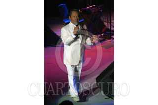 VILLAHERMOSA, TABASCO, 26OCTUBRE2005.- En el marco del III Festival Cultural CEIBA, se presentó en el teatro estatal Esperanza Iris, el maestro Armando Manzanero, quien a lo largo de cinco decadas de trayectoria varias melodias de su inspiración han sido interpretadas por Frank Sinatra, Elvis Presley, Luis Miguel, Angelica María, Raphael y Johnny Mathis, entre otros. FOTO: Marco Polo Guzmán/CUARTOSCURO.COM