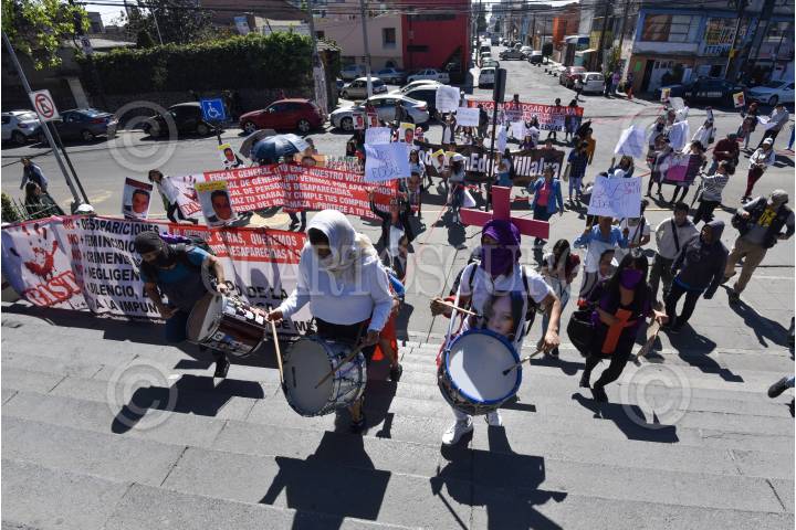 Familiares de personas desaparecidas se manifestaron en la Fiscalía General de Justicia del Estado de México exigiendo se investiguen los casos de sus familiares desaparecidos y de forma simbólica clausuraron el edificio, el cual fue protegido por vallas y policías ministeriales y estatales para evitar que los manifestantes lograran ingresar al inmueble. FOTO: CRISANTA ESPINOSA AGUILAR /CUARTOSCURO.COM
