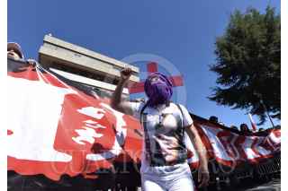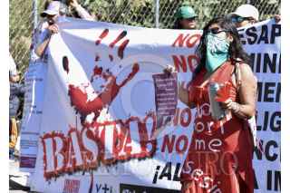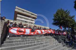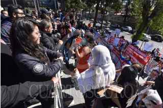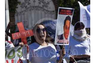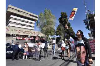 Familiares de personas desaparecidas se manifestaron en la Fiscalía General de Justicia del Estado de México exigiendo se investiguen los casos de sus familiares desaparecidos y de forma simbólica clausuraron el edificio, el cual fue protegido por vallas y policías ministeriales y estatales para evitar que los manifestantes lograran ingresar al inmueble. FOTO: CRISANTA ESPINOSA AGUILAR /CUARTOSCURO.COM