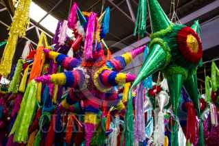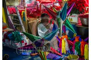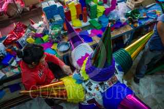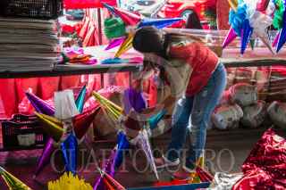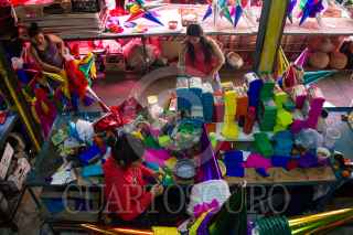 Durante la epoca decembrina, la familia Rodríguez y colaboradores elaboran piñatas de diversos colores y tamaños en un pequeño local ubicado en el corazón del mercado jamaica. Este mercado es de los más emblematicos y conocido por la venta de productos de temporada y pinos naturales. FOTO: ANDREA MURCIA /CUARTOSCURO.COM