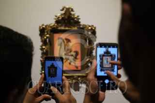 Cientos de capitalinos asistieron a ver la exposición "Emiliano. Zapata después de Zapata", la cual es una representación en el marco del Año del Caudillo del Sur. Después de la polémica de la obra "La Revolución", del pintor Fabián Cháirez, la cual muestra a Emiliano Zapata desnudo, con tacones, con una bandera de la diversidad sexual y un sombrero rosa, integrantes de de la Unión Nacional de Trabajadores Agrícolas (UNTA) protestaron el martes pasado en contra de la obra en el Palacio de Bellas Artes, en donde también agredieron a personas de la comunidad LGBTTTI. Tres días después, artistas, defensores de derechos humanos e integrantes de colectivos de la comunidad LGBTTTI se manifestaron afuera de éste recinto en la que apoyaron al artista y en el que protestaron en contra de la homofobia y a favor de la libertad creativa. La exposición estará abierta al público hasta el 16 de febrero del 2020. FOTO: GRACIELA LÓPEZ /CUARTOSCURO.COM