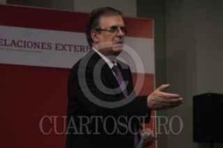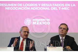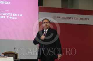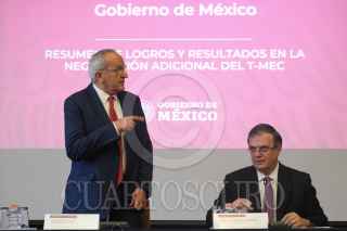 Jesús Seade, subsecretario para América del Norte, y Marcelo Ebrad, secretario de Relaciones Exteriores, ofrecieron una conferencia de prensa en materia de la ratificación del TMEC, la cual se realizó en las instalaciones de la Secetaria de Relaciones Exteriores (SRE). FOTO: GRACIELA LÓPEZ /CUARTOSCURO.COM