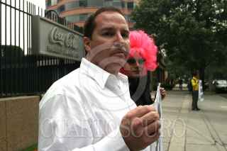 MEXICO, D.F. 26OCTUBRE2005.- Roberto Mendoza, extrabajador de la Coca Cola Famsa protestó frente a las oficinas de la empresa refresquera, él argumenta que fue despedido por sus preferencias sexuales. FOTO: Nelly Salas/CUARTOSCURO.COM