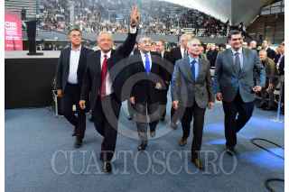 El Presidente de México, Andrés Manuel López Obrador, encabezó la inauguración del 6º Congreso Internacional de Innovación Educativa, CIIE Tec 2019, en la Arena Borregos del Instituto Tecnológico y de Estudios Superiores de Monterrey (ITESM). Lo acompañaron Jaime Rodríguez Calderon "El Bronco", gobernador del estado, y Alfonso Romo, Jefe de la Oficina de la Presidencia. FOTO: PRESIDENCIA/CUARTOSCURO.COM