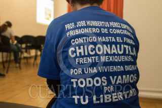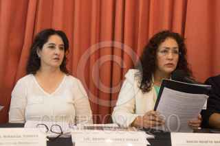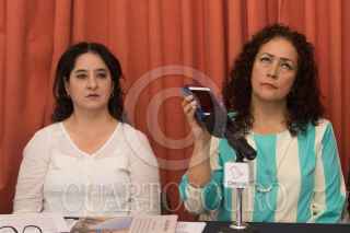 Las integrantes del Frente Mexiquense en Defensa para una Vivienda Digna; Ana María Miranda Torres, Beatriz Juárez Rosas y Rocío Rosete Denis ofrecieron una conferencia de prensa para denunciar que en el caso de José Humbertus Pérez Espinoza; quien es presidente de esta organización y actualmente cumple cuatros años en prisión acusado de cuatro delitos, entre los que se encuentran el de robo con violencia y el de extorción, el actual fiscal del Estado de México, Alejandro Gómez Sánchez, ejerce una presión indebida en los jueces que llevan su caso para que lo declaren culpable. Ellas consideran que esta fabricación de delitos en su contra son en represalia por haber investigado y denunciado un mega fraude hipotecario e inmobiliario en México, en donde defraudaron a más de 10 millones de familias mexicanas y en que en los últimos años de políticas públicas en materia de vivienda tuvo un costo de más de un billón, 350 mil millones de pesos, en donde estuvieron involucradas inmobiliarias y autoridades estatales. FOTO: MOISÉS PABLO/CUARTOSCURO.COM