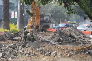 Durante los trabajos de reencarpetamiento en la avenida Diagonal San Antonio y Casas Grandes, colonia Narvarte, se presentó una fuga de gas natural por lo que bomberos tuvieron que atender la emergencia, varios domicilios cercanos fueron desalojados. FOTO: ARMANDO MONROY/CUARTOSCURO.COM