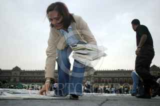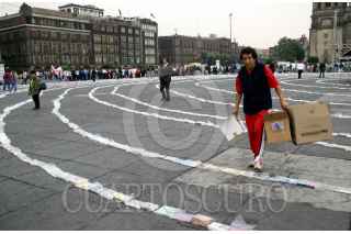 MEXICO D.F. 26 OCTUBRE2005.- En el zocalo capitalino se realizo la espiral de libros más grande del mundo comenzó con El Ingenioso Hidalgo Don Quijote de la Mancha y cada 400 libros éste clásico de la literatura. Con los libros de la espiral se obsequieran a diversas cárceles para crear en ellas bibliotecas y salas de lectura. FOTO: Miguel Dimayuga/CUARTOSCURO.COM