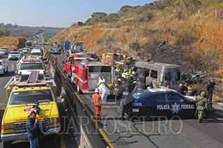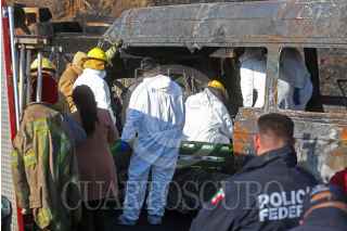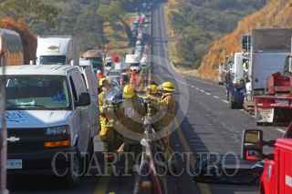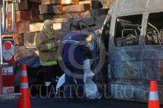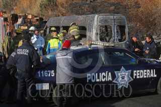Esta madrugada 26 personas que viajaban de Guanajuato con rumbo a Nuevo Vallarta en el estado de Nayarit, sufrieron un accidente automovilístico, 14 personas murieron calcinadas y otras 12 resultaron heridas, dicho percance sucedió a la altura del kilometro 12 de la autopista Lagos de Moreno-Guadalajara en el tramo Tepatitlán-Zapotlanejo. FOTO: FERNANDO CARRANZA GARCIA / CUARTOSCURO.COM