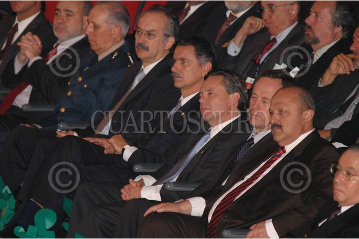 MÉXICO, D.F. 09NOVIEMBRE2005.- El secretario de Hacienda, Francisco Gil Díaz; Carlos Abascal, Secretario de Gobernación y Eduardo Medina Mora, Secretario de Seguridad Pública durante la entrega de Premios y Reconocimientos a la innovación y a la calidad en la administaración Pública . FOTO: Miriam Sánchez/CUARTOSCURO.COM