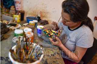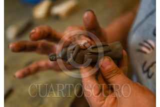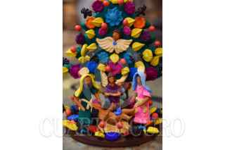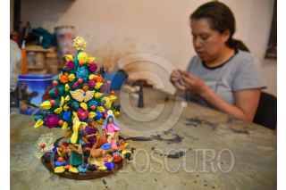Durante estas fechas artesanos de Metepec elaboran nacimientos de barro de todos los tamaños y formas, Reyna Martínez quien trabaja miniaturas realiza nacimientos en árboles de la vida y figuras por separados en su taller familiar, aprendiendo este oficio de sus padres y abuelos. FOTO: CRISANTA ESPINOSA AGUILAR /CUARTOSCURO.COM