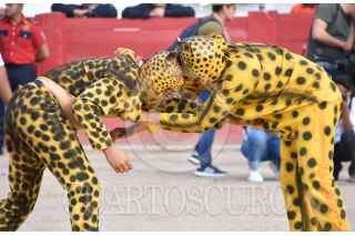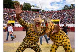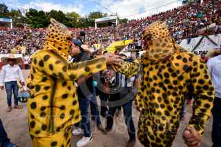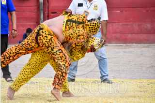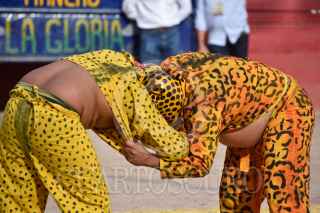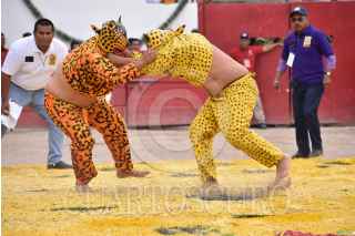Los tigres de las danzas de “Los Tlacololeros”, la cual es la más representativa del estado de Guerrero, de los 5 barrios tradicionales de Chilpancingo (San Antonio, Santa Cruz, San Mateo, San Francisco y Tequicorral) efectuaron el denominado “Porrazo del Tigre, una competencia de lucha grecorromana combinada con movimientos felinos, para coronar al campeón de la edición 194 de la Feria de San Mateo Navidad y Año Nuevo de la capital del estado de Guerrero; resultando campeón el tigre representante del barrio de Tequicorral, el denominado “Barrio Joven”, ya que este era un anexo del barrio de San Francisco, pero desde el 2004 recibió el nombramiento de barrio. FOTO: DASSAEV TÉLLEZ ADAME /CUARTOSCURO.COM