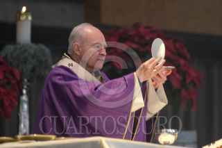 El Cardenal Carlos Aguiar Retes, primer arzobispado de México, celebró la eucaristía dominical a medio día en la Basílica de Guadalupe. FOTO: GRACIELA LÓPEZ /CUARTOSCURO.COM