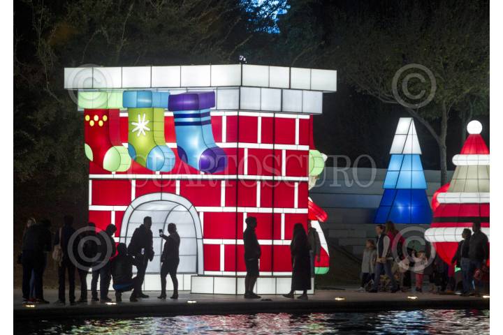 MONTERREY, NUEVO LEÓN, El festival de luces navideñas "Luztopía" es parte de un atractivo turístico durante el recorrido del paseo Santa Lucía. Cientos de personas visitan las más de 200 figuras iluminadas con motivo de la época navideña.